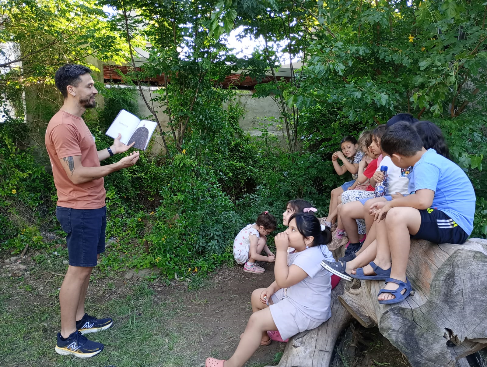 Colgar poemas en árboles del patio o de la vereda de la institución educativa. Incluir un QR con recomendaciones lectoras grabadas por estudiantes. Esta acción extiende la lectura al espacio público y visibiliza a la biblioteca escolar como un ámbito cultural en la comunidad. Puede ampliarse a los árboles de una plaza, los de un espacio público como un hospital o los accesos a salas de salud, entre otros.