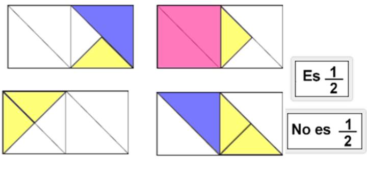 A continuación vas a encontrar varias actividades en las que hay que cubrir un medio del rectángulo.