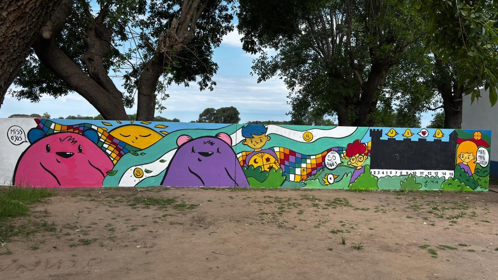 Mural de la artista Pabla Arias (@missojos) en el jardín Ignacio Coliqueo, Los Toldos, provincia de Buenos Aires. Fuente: Archivo DGCyE.
