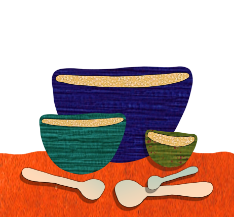 In the kitchen, Goldilocks saw three bowls of porridge.
