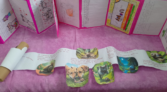 - Evidencias audiovisuales y fotográficas: registro de las exposiciones de las producciones, registro visual del taller de cocina y la dramatización de alguno de los capítulos del libro leído.