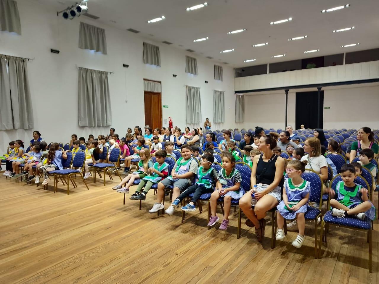Proyección de la función "Irulana y el ogronte" en la que participaron niñas y niños de los jardines de infantes 901 y 905 de General Las Heras. Fuente: Archivo DGCyE.