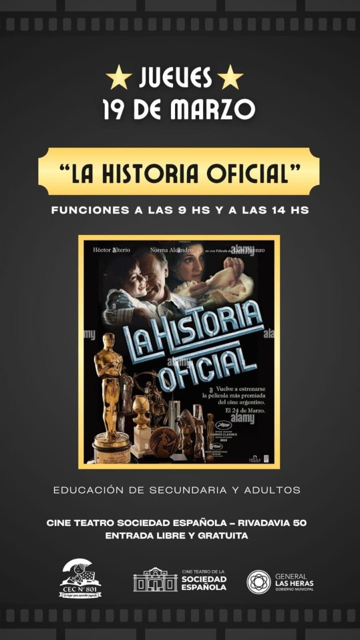 El CEC 801 de General Las Heras inició un ciclo de cine comunitario en articulación con el municipio del distrito y el cine teatro de la Sociedad Española local. De las distintas funciones programadas participan docentes y estudiantes de las instituciones educativas de la localidad y la comunidad en general.